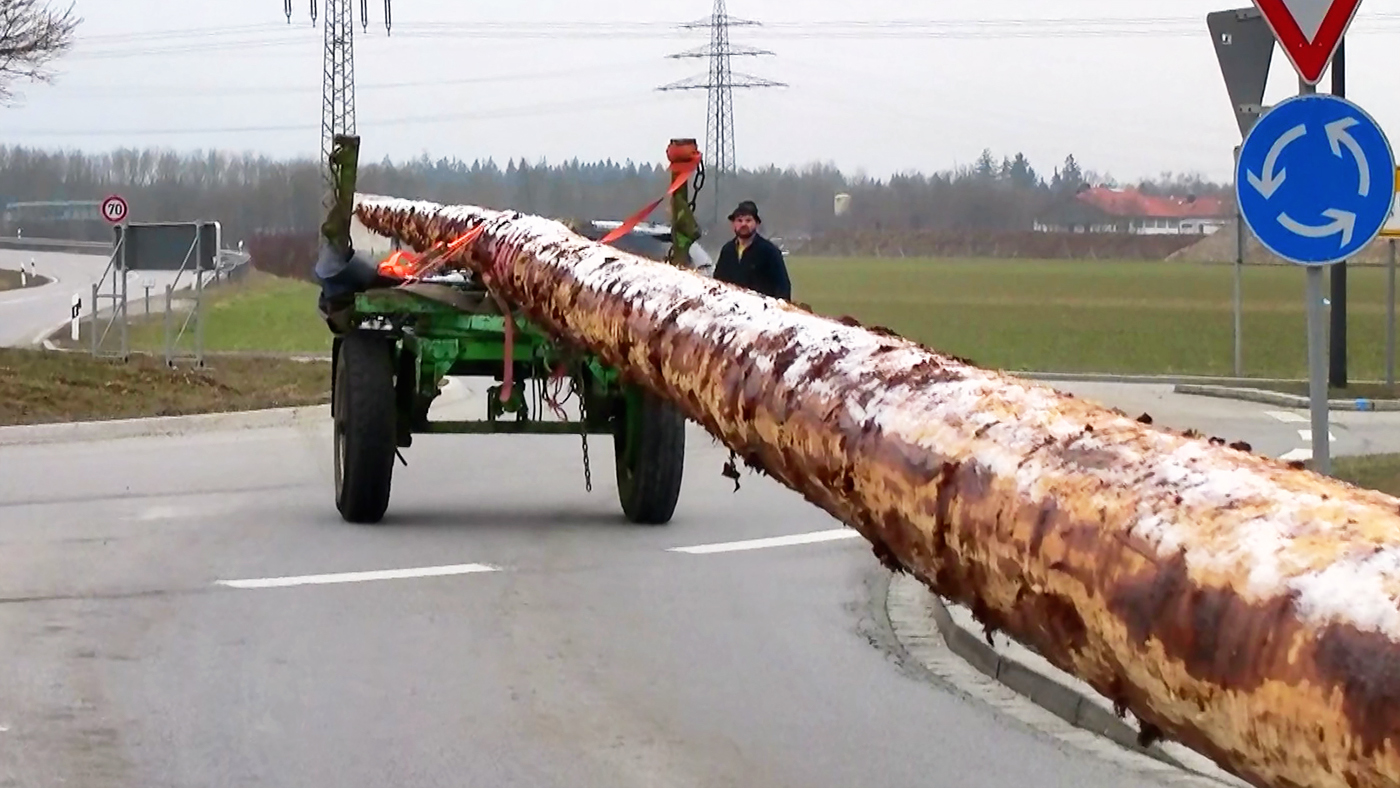 Noch liegt er im Wald bei Aying, bald aber in Berg am Laim: Am Sonntag, dem 8. April 2018 kommt der rohe Berg am Laimer Maibaum etwa gegen 14 Uhr auf dem Gelände der ehemaligen Bushaltestelle Michaelibad (St.-Michael-Straße Ecke Heinrich-Wieland-Straße) an.